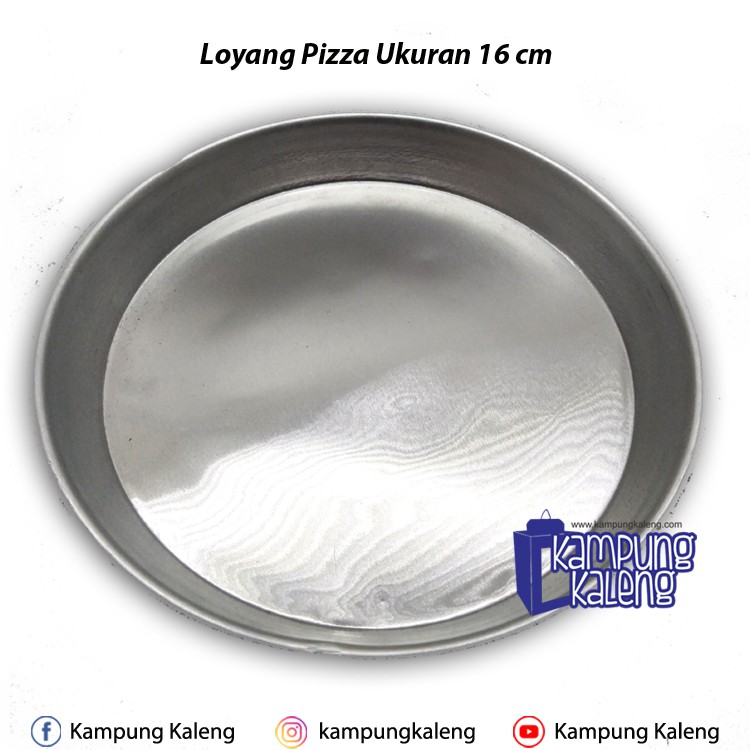 Loyang Pizza Mini Ukuran diameter atas 16 cm diameter bawah 14 cm, terbuat dari alumunium press ketebalan 0.5 mm. Minimal pembelian adalah 6 pcs / setengah lusin. Harga yang tertera untuk