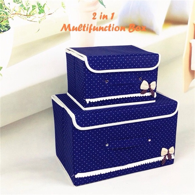 2 in 1 Multifunction box adalah kotak penyimpanan dengan motif polkadot. ! set terdiri dari 2 box dengan ukuran berbeda.
