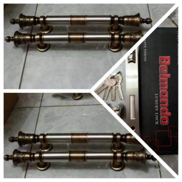 Handle pintu antik pjg 50cm 2set( 4 gagang) + kunci pelor belmondo comp key isi 4 anak kunci. Kwalitas bagus dan