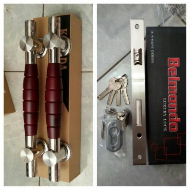 Handle pintu roket pjg 33cm 1set(2gagang)+ body pelor belmondo comp key isi 4 anak kunci.