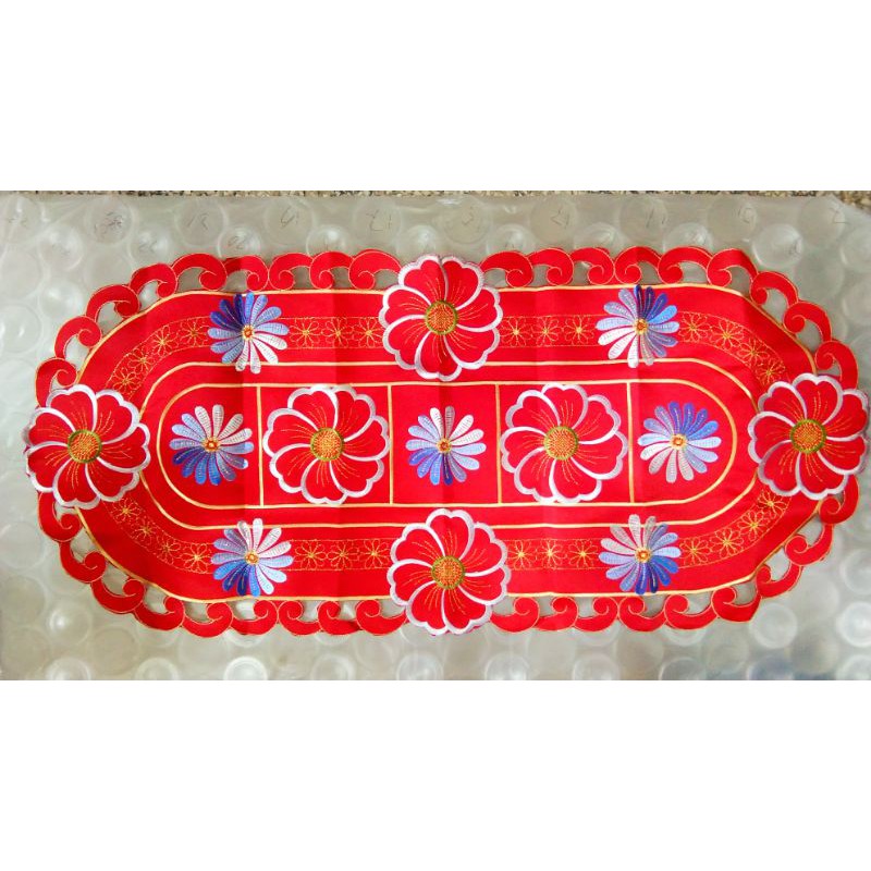 Harga Pabrik Perlengkapan di Kabupaten Nias Utara Taplak Meja Tamu 86x38cm Oval Merah Kuning Bunga Kain Bordir Rrt Natal Tahun Baru Imlek Idul Fitri dari Tidak Ada Merek Kota Mojokerto