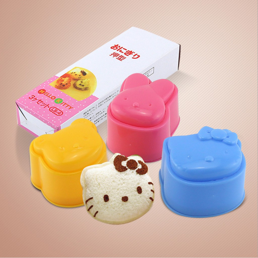 Cetakan nasi mini dengan 3 motif lucu sekaligus: Hello Kitty, Bear, Bunny.