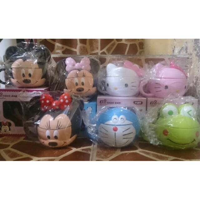 Mug karakter doraemon,kity, pooh, minnie keropi bahan melamin dan plus tutup... Cocok untuk souvenir/hadiah /dipakai sendiri.. Silahkan d order only serius o