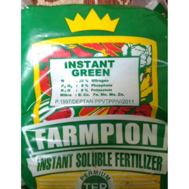 pupuk greeen farmpion ,berguna untuk pertumbuhan batang, akar dan daun, sehingga tanaman jadi gemuk.berat bersih 1 kg/bungkus.