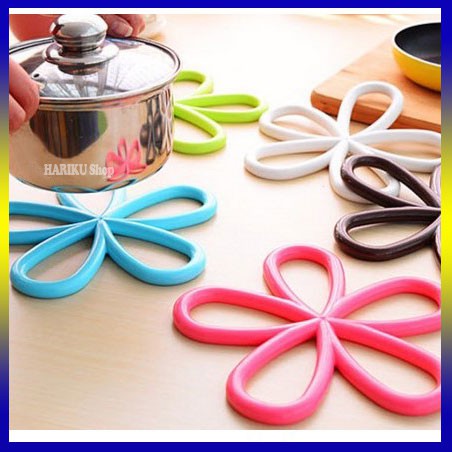 Tatakan anti panas dengan bentuk flower, lebih modern dan menarik. Dari bahan silicone lembut, anti panas, anti slip, gak bakal bergeser jika dipasang di atas permukaan kaca atau keramik. Cocok untuk tatakan piring, panci, gelas.